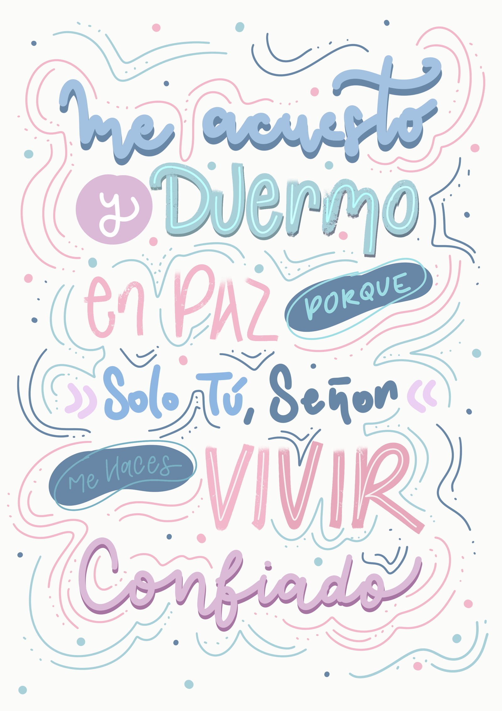 Salmos 4 fue pensado como una imagen que refleja lo que el versículo dice. Puede imprimirse para enmarcar o imprimir en canvas o tela y utilizar como cuadro, aplicar en remeras o incluso hacer una bitácora o agenda.