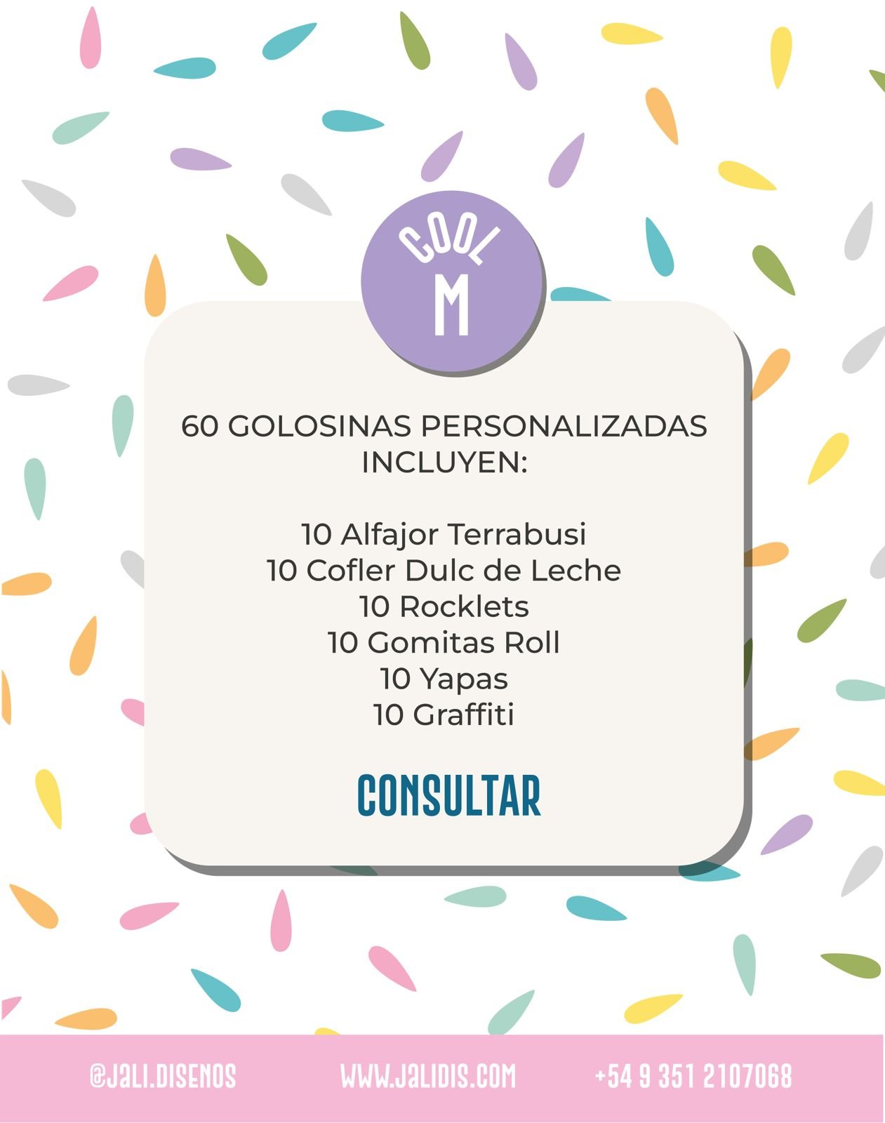 Combo de 60 golosinas personalizadas.