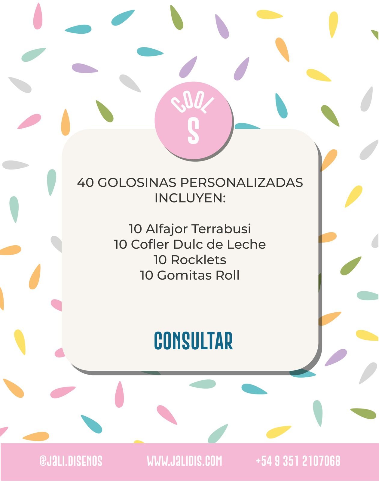 Combo de 40 golosinas premium personalizadas.Contiene: