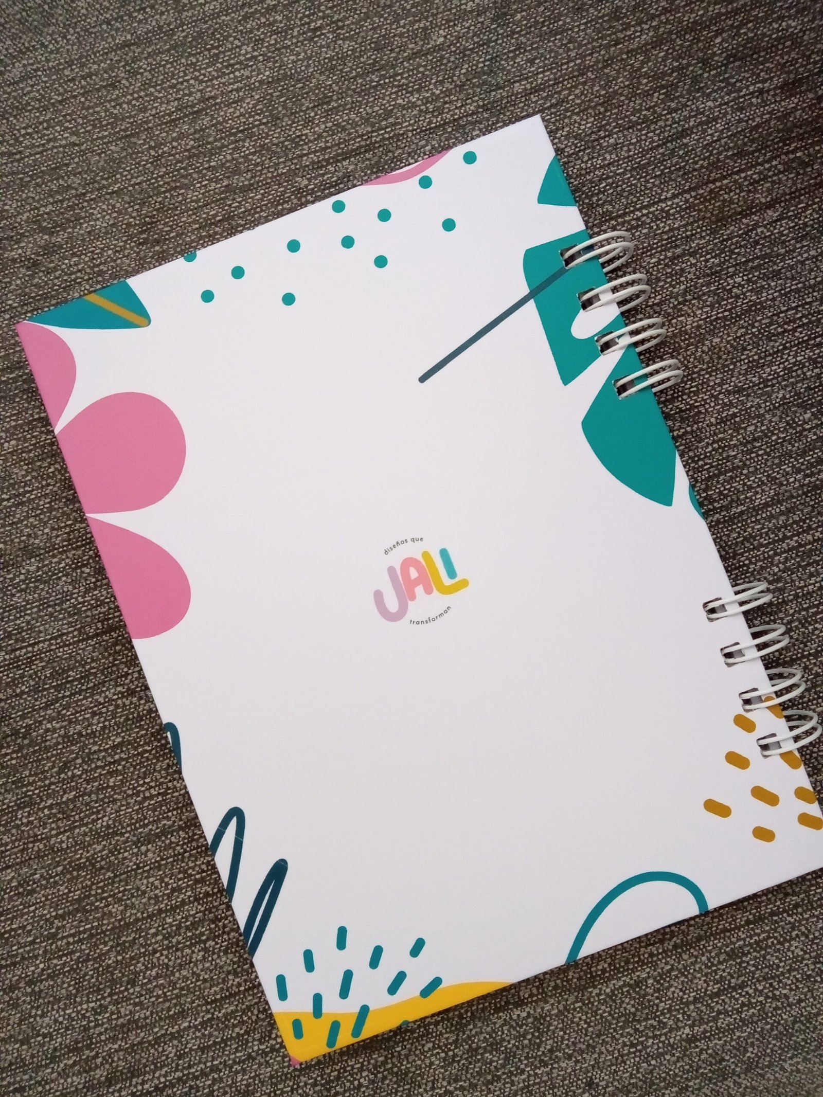 Bitácora diseñada por Jali, ideal para journaling, notas creativas o planificación diaria. Cuenta con una terminación cuidada, anillos metálicos y hojas lisas que permiten escribir, dibujar o pegar recortes con comodidad. Disponible en laminado mate o brillante.