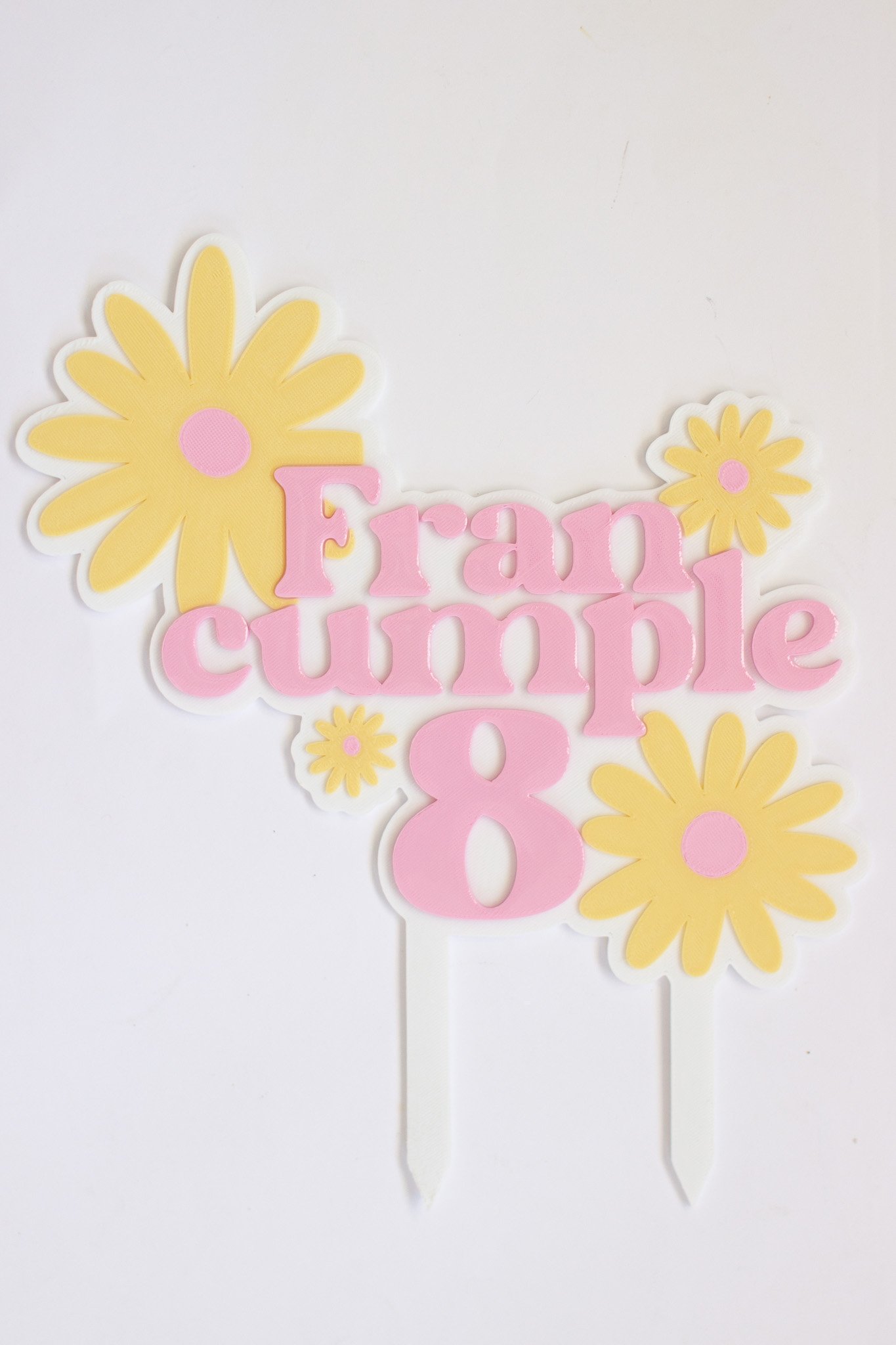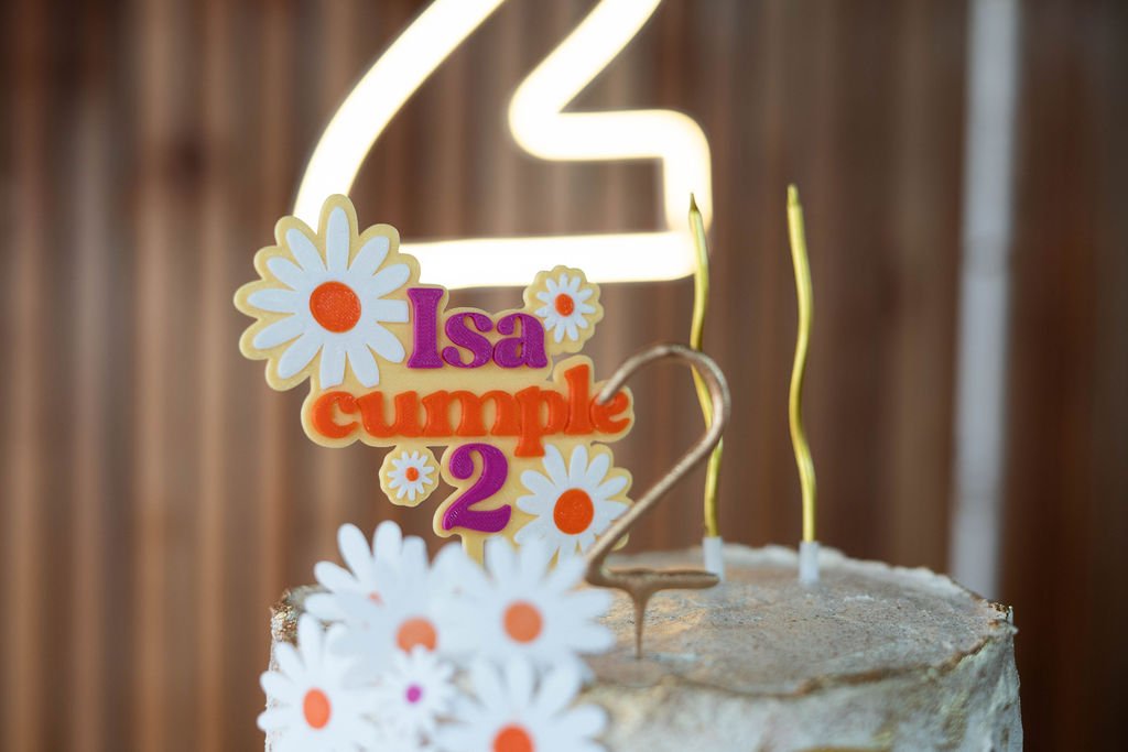 Topper cake realizados en impresión 3D, ideales para destacar tortas de cumpleaños y celebraciones especiales. Cada diseño se crea en PLA y puede combinar hasta 4 colores, logrando un acabado único.